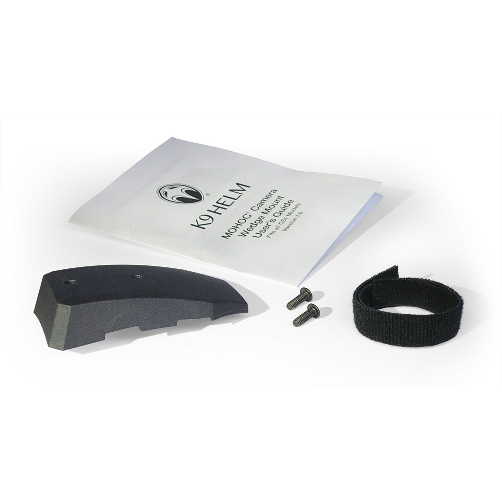 The Wedge Mount is a direct replacement for the standard Picatinny rail on top of the K9 Helm CS1-A2 GoggleHelm. Designed specifically for mounting MOHOC 1 and MOHOC 2 cameras, it features a purposeful upward-tilted wedge angle that compensates for a dog’s natural forward-leaning head position while moving on all fours.