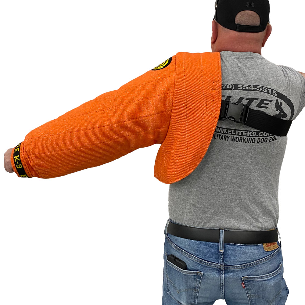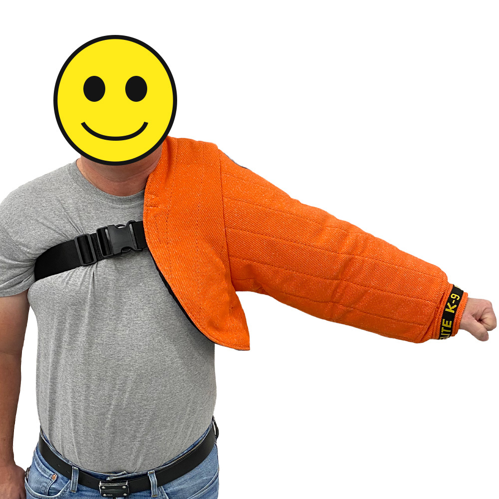 The PSA Sleeve is great for Police, Sport, All Around (PSA) Bite Work, the Dutch KNPV program and PSA Dog Sports. This sleeve is built like a semi-comp bite suit jacket. It offers great protection for the arm, arm pit and chest and is ambidextrous and allows great flexibility and range of motion for the decoy. It has handles on the inside top of the sleeve and an adjustable chest strap with quick release buckle.