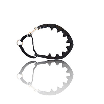 Pronged, linked design is gentle but effective in enforcing pack leadership. Helps prevent pulling and lunging behavior. Has appearance of a flat collar.