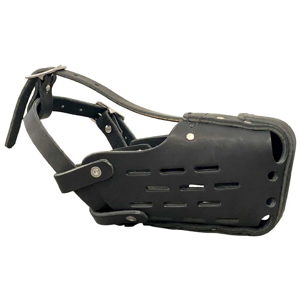 Designed for optimal airflow, this breathable leather muzzle allows your dog to easily pant while remaining secure and under control. Adjustable straps offer a custom, secure fit making it ideal for police K9s, service dogs, and active pets alike.